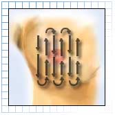 your breast is divided into vertical stripes. Begin